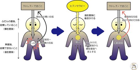「ヒプノセラピーとは」の「潜在意識と顕在意識」の章でも出てきた内容ですが、ヒプノセラピーの本質を図にしたものです。