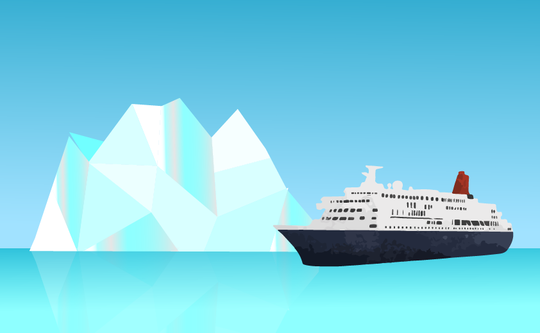 海上に出ている氷山は小さいので、ぱっと見ただけでは、ほんの小さな氷が船と衝突しただけのようですが、海中にもぐっている部分は果てしないほどの大きさの山。