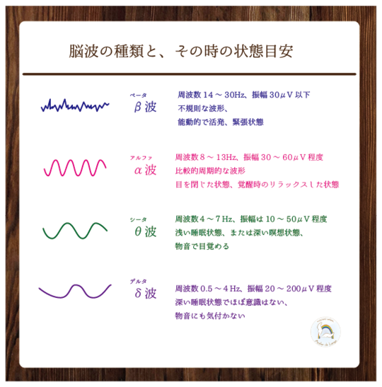 私たちが目覚めて活動している時は、だいたい「ベータ波」という状態になっています。眠っている状態は「デルタ波」です。